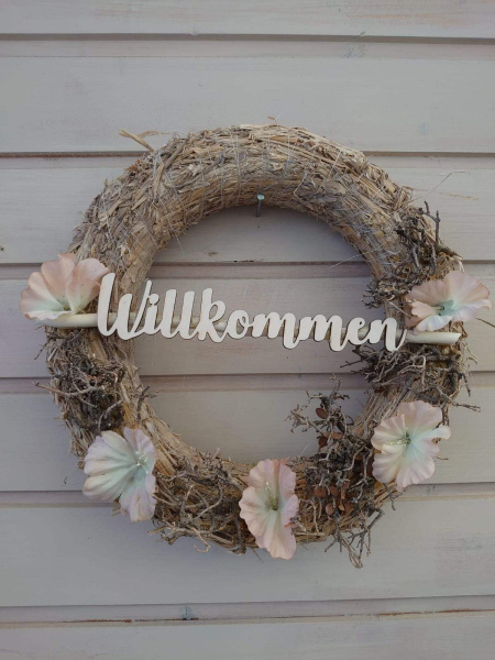 Dieser Schriftzug eignet sich sehr gut zum gestallten eigener Türkränze oder Gestecke.