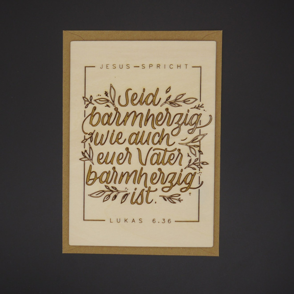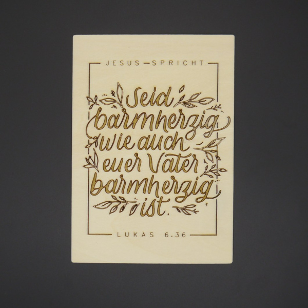 Postkarte aus echtem Holz mit der Jahreslosung 2021